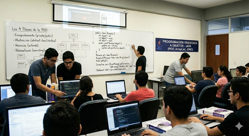 Curso introductorio–medio de Programación Orientada a Objetos en Java, enfocado en el diseño y desarrollo de soluciones mediante clases, encapsulamiento, herencia, polimorfismo y abstracción, aplicando buenas prácticas y un proyecto integrador que fortalece el razonamiento lógico y la estructura del software.